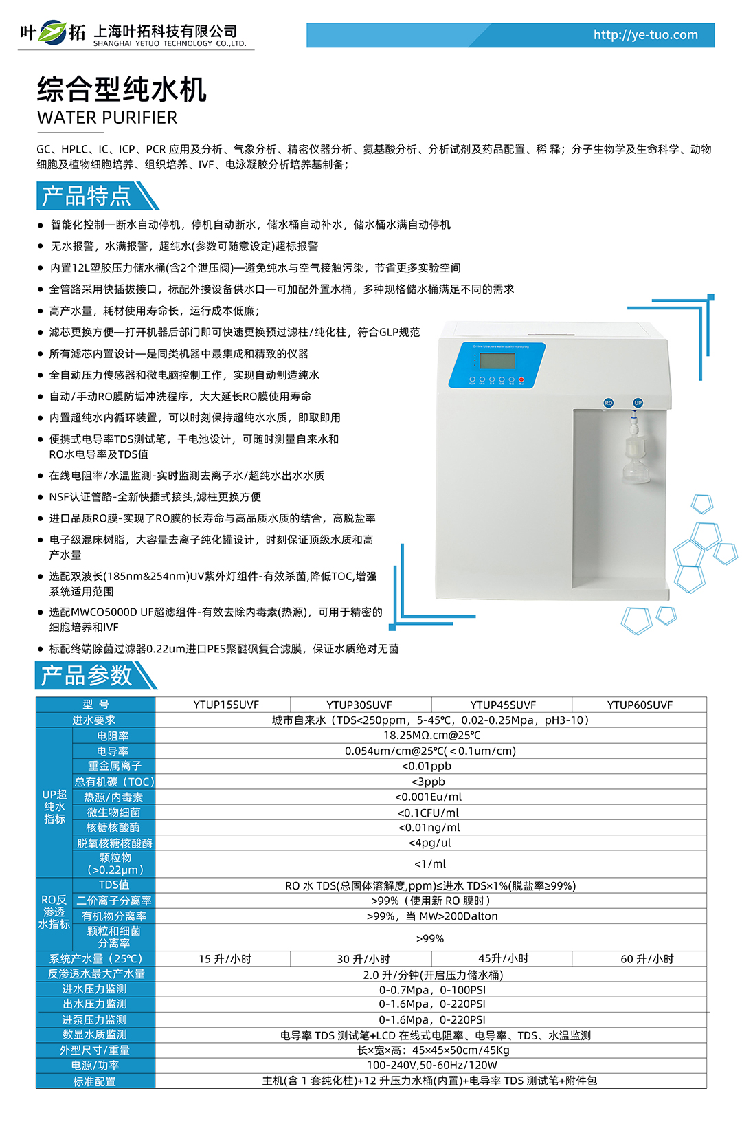 上海葉拓 YTUP45SUVF 綜合型純水機