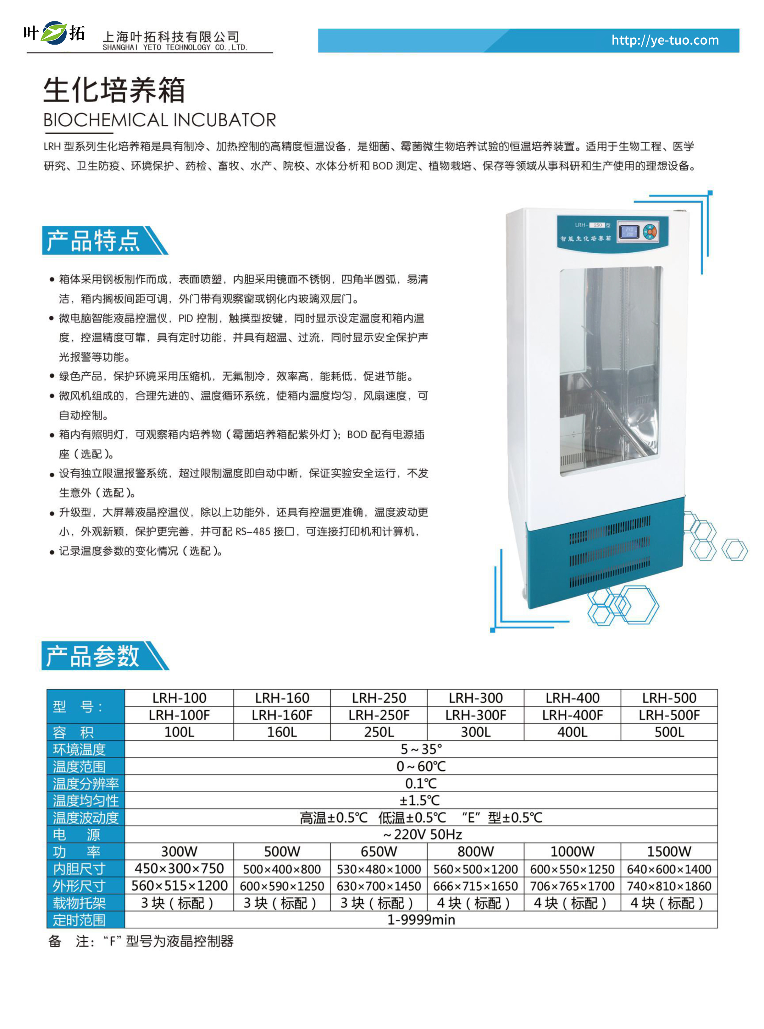 葉拓LRH系列生化培養(yǎng)箱產(chǎn)品特點