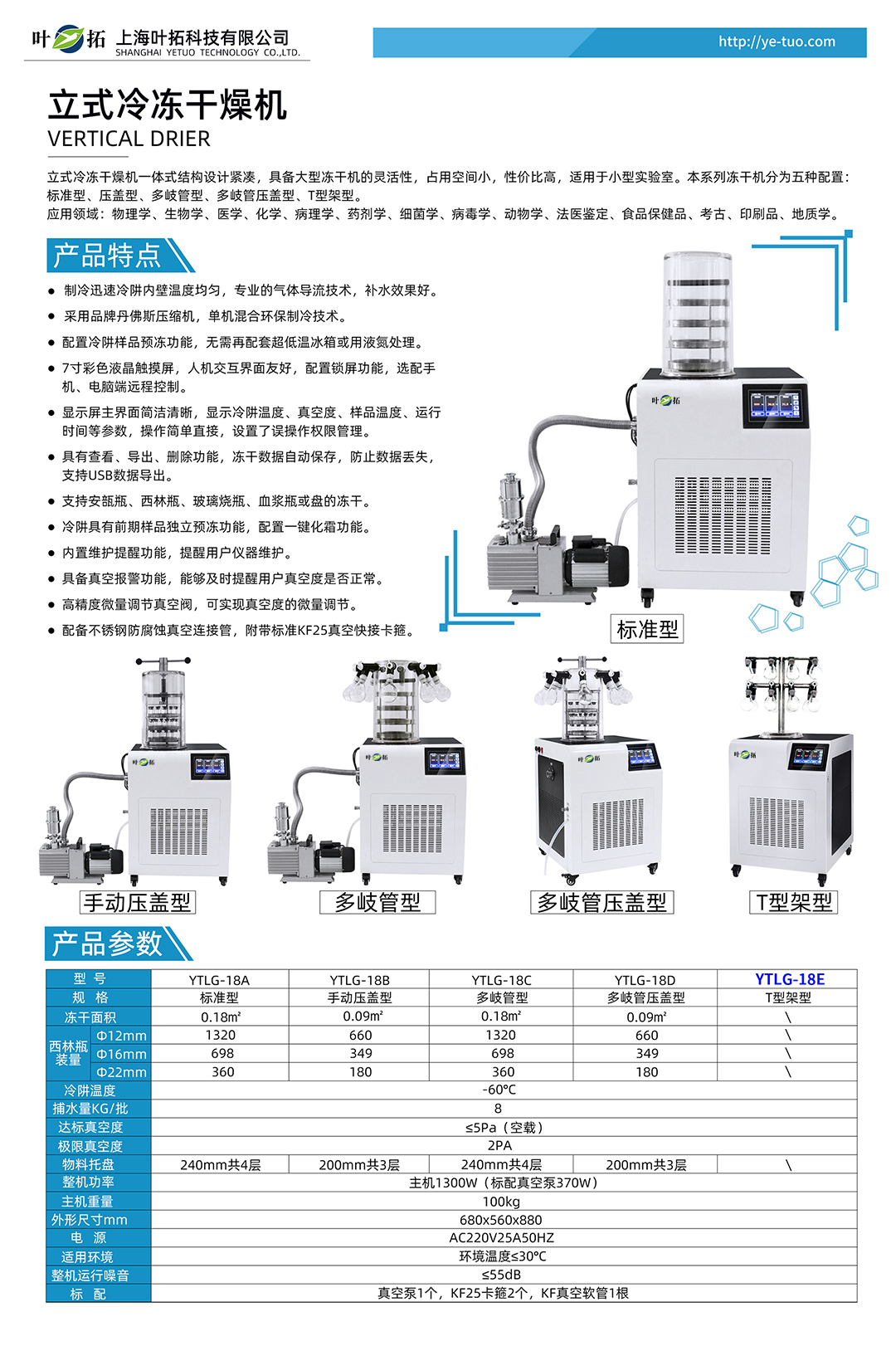 上海葉拓 YTLG-18E 凍干機 立式真空冷凍干燥機 T型架型
