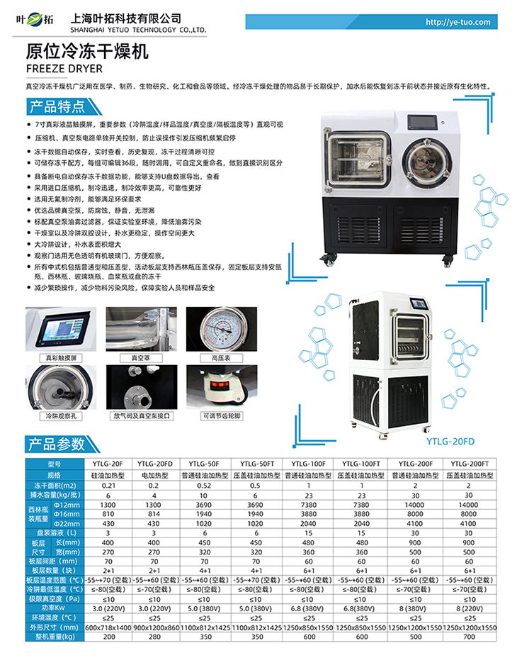 上海葉拓 YTLG-20FDT 中式真空冷凍干燥機